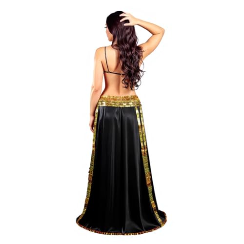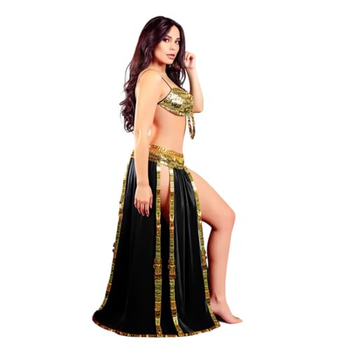 Generic - فستان رقص شرقي ماكسي بتصميم رقص سوت، للنساء، بدون أكمام، مكون من قطعتين ومزين بعملات ذهبية، باللون الأسود والذهبي، مقاس موحد