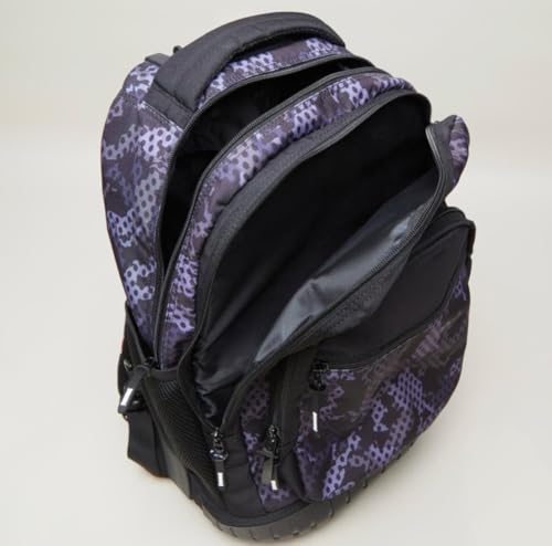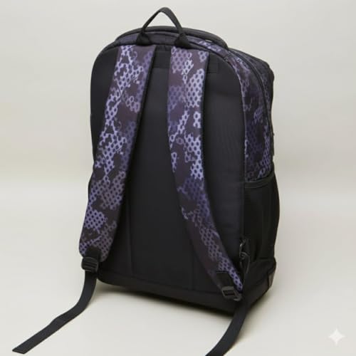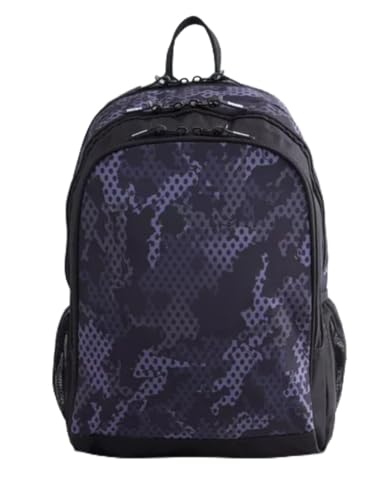 Generic - حقيبة ظهرمدرسية بنمط تموي أسود وبنفسجي متعددة الجيوب للاستخدام اليومي رجالي وحريمي