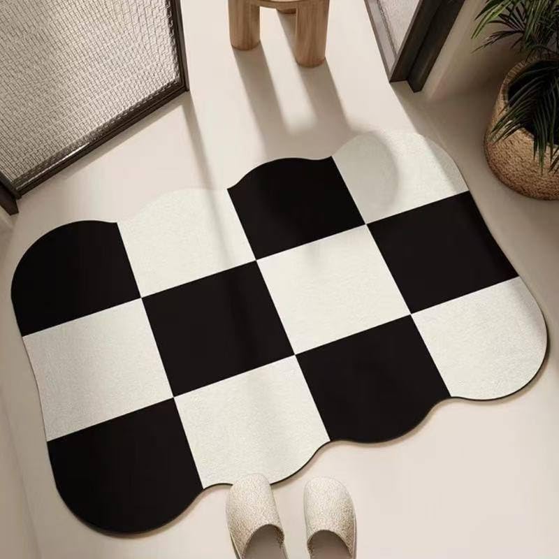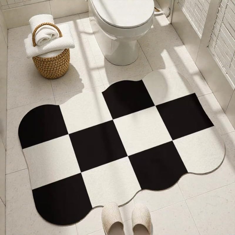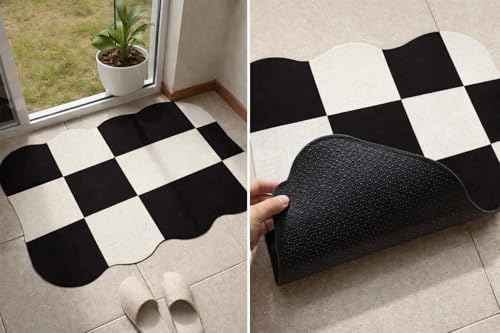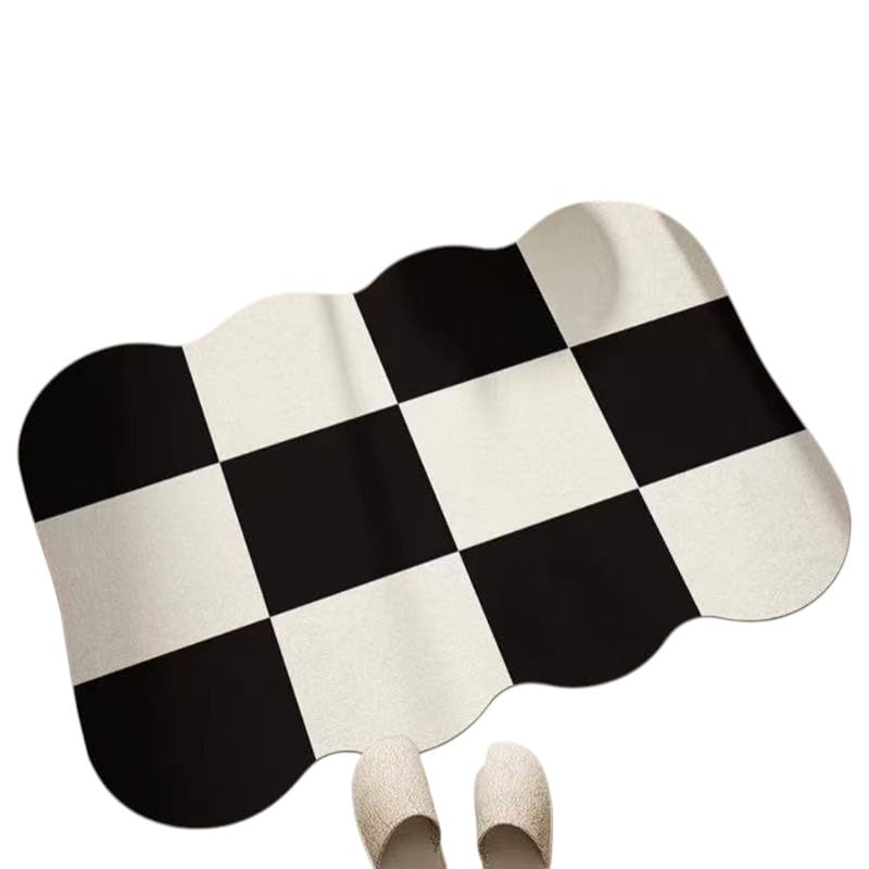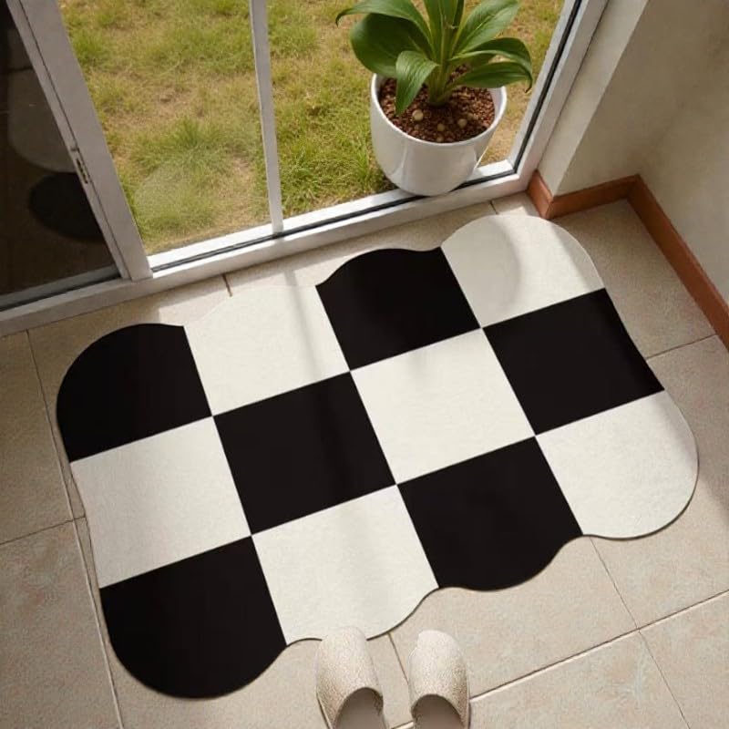 Generic - دواسة أرضية بتصميم مربعات شطرنج، أبيض وأسود، قاعدة مطاطية مانعة للانزلاق، عالية الامتصاص للمياه، للمداخل والحمامات