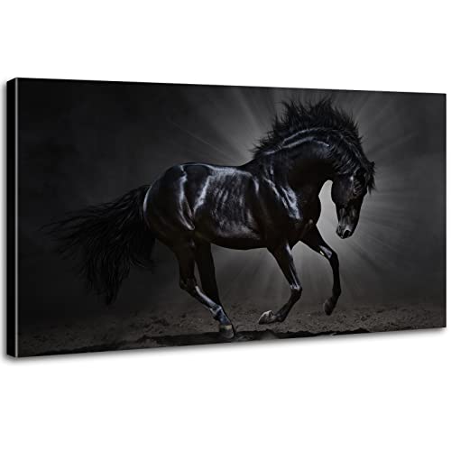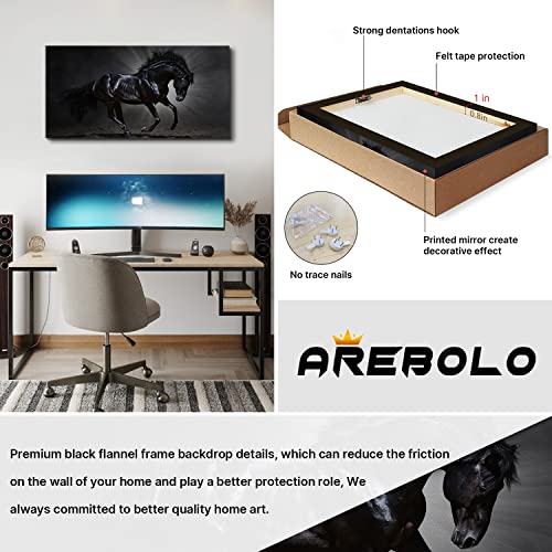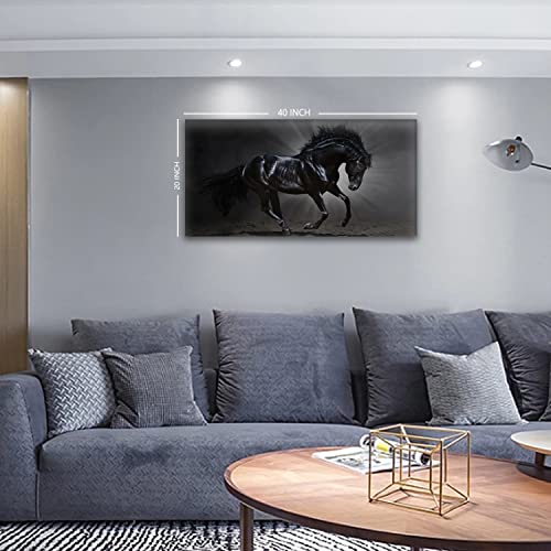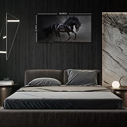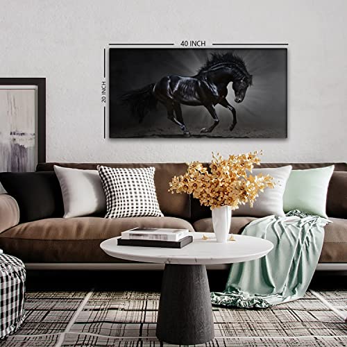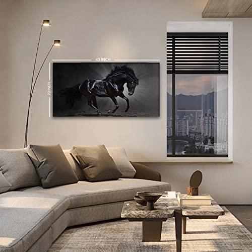 AREBOLO - لوحة فنية جدارية من القماش بتصميم حصان اسود وابيض حيوانات برية مقاس 20 × 40 انش صورة جري ديكور حائط غرفة المعيشة موستانج غربي حديث لغرفة النوم والمكتب وديكور المنزل