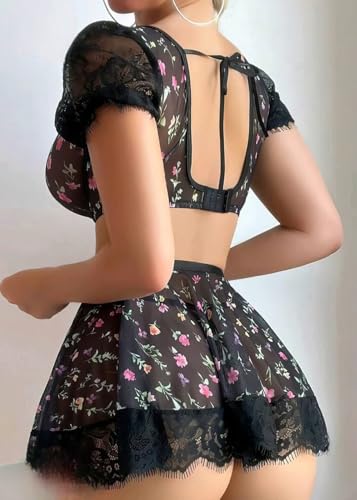 Generic - لانجيري تنكري بيبي دول مكون من توب وجيبة بلون اسود، مقاس واحد