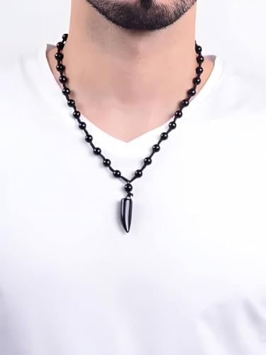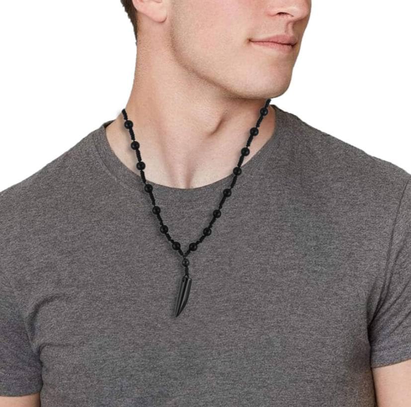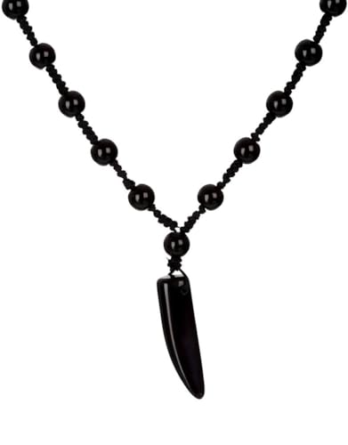 Generic - عقد من الخرز الاسود على شكل اسنان للرجال، سلسلة توازن الطاقة الهيماتايت، هدية مجوهرات
