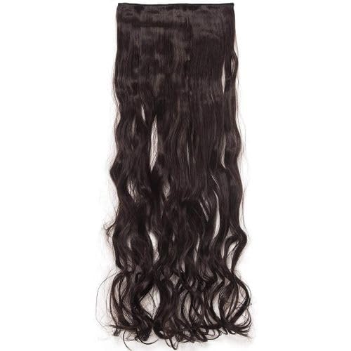 Generic - وصلة شعر اكستنشن طويل مموجه صناعي اسود بني مع 5 مشابك تثبيت