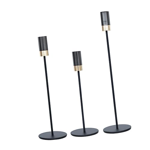 Generic - طقم حوامل شموع مخروطية عملية وأنيقة لديكور المنزل الحديث لطاولات الزفاف وعشاء الذكرى السنوية - طقم من 3 حوامل، لون أسود