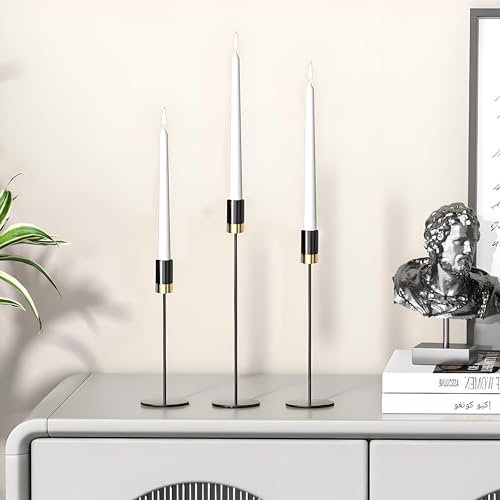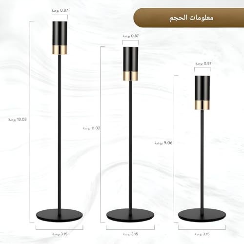 - تصميم أنيق: تتضمن هذه المجموعة 3 حوامل شمعدان أنيقة وعصرية بلمسة نهائية سوداء، مثالية لإضافة لمسة من الرقي إلى أي طاولة أو رف.