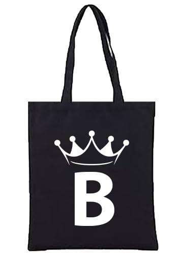 Generic - شنطة يد كبيرة توت من القماش مزينة بحرف B وتاج، شنطة كتف