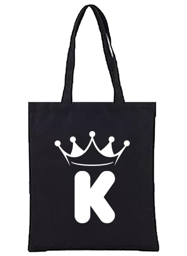 Generic - شنطة يد كبيرة توت قماشية سوداء مع تاج (K) شنطة كتف