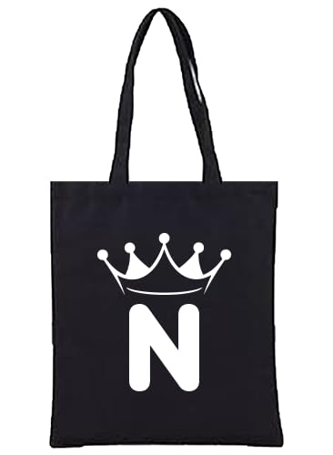 Generic - شنطة يد كبيرة توت من القماش بلون اسود بحروف تاج، شنطة كتف