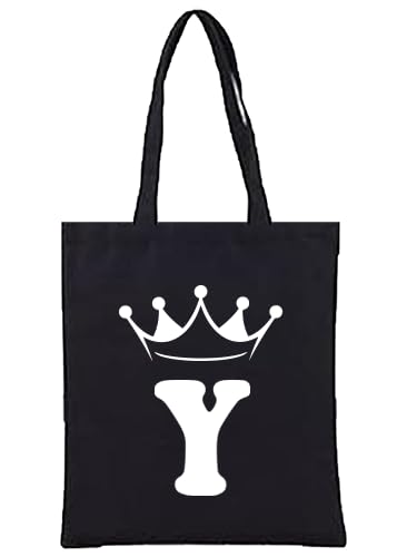 Generic - شنطة يد كبيرة توت من القماش بلون اسود بحروف تاج (Y)، شنطة كتف