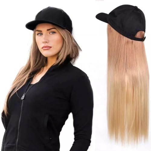 Generic - باروكه كاب اسود، شعر مستعار، مستقيمهباللون اشقر، قبعة بيسبول ، شعر مستعار للنساء