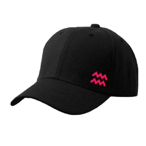 Generic - قبعة سوداء مع شعار برج الدلو باللون الاحمر