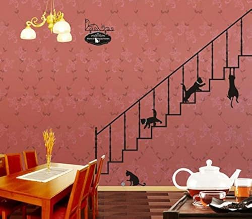 Other - ملصقات جدارية لاصقة قابلة للتقشير بتصميم القطط السوداء من البولي فينيل كلوريد لتزيين الدرج، متعدد الالوان