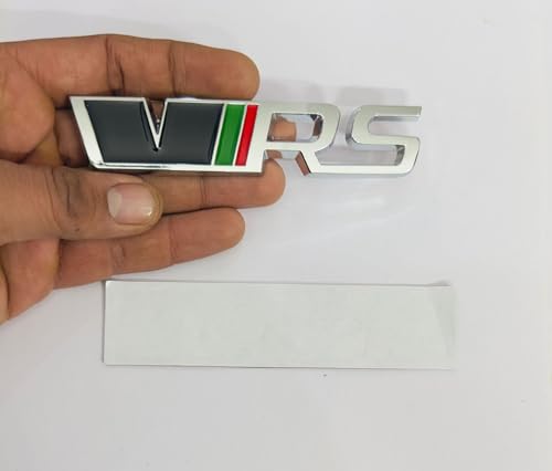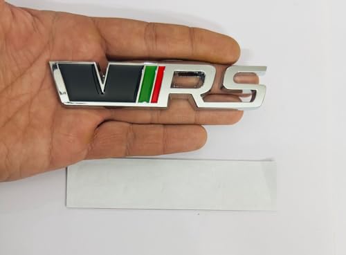 AUTO MT - شارة معدنية للسيارة والدراجة VRS، شعار ثلاثي الأبعاد، ملصق سباق ورياضي للسيارات - 1 قطعة - باللون الكروم الأسود، مقاس 12 × 2.5 سم