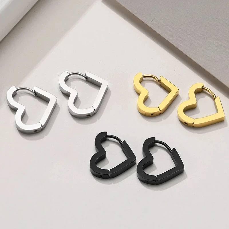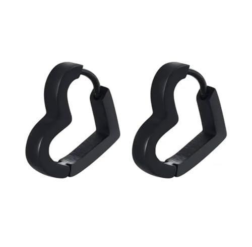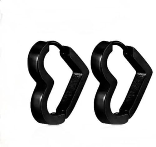 Generic - حلقان هندسية صغيرة بلون أسود على شكل قلب حلقية عصرية للنساء والفتيات مجوهرات جديدة للحفلات معدن