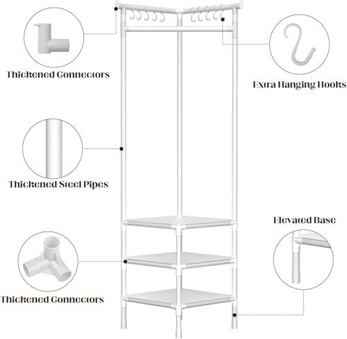 - 【منظم الزوايا】يتميز رف الملابس الخاص بنا بتصميم زاوية قائمة 90 درجة ليناسب زوايا منزلك بشكل مثالي. إنه الخيار الأفضل لمنطقة الدخول الصغيرة وكافية للحفاظ على كل شيء مرتبًا.