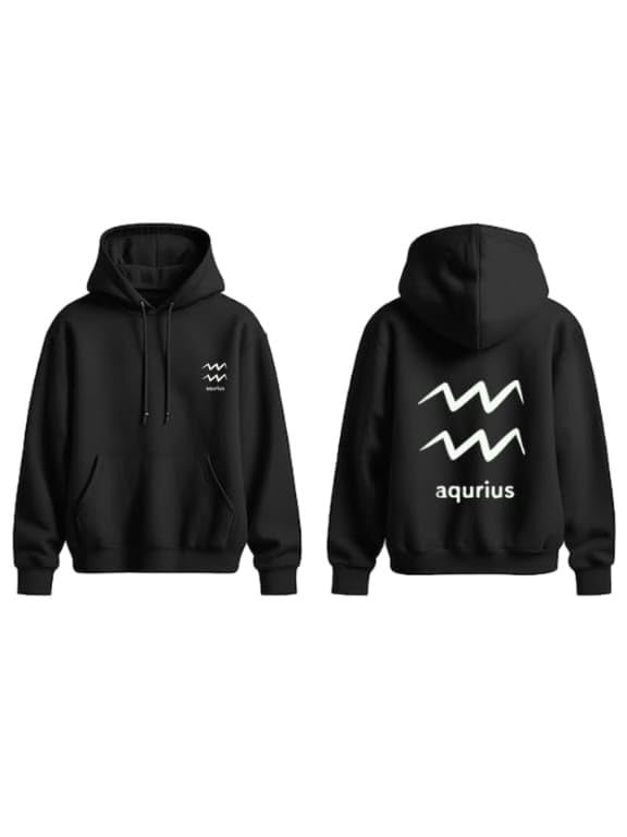 Generic - هودي قطن اسود مع شعار اكيوريوس زودياك ابيض مقاس (S)