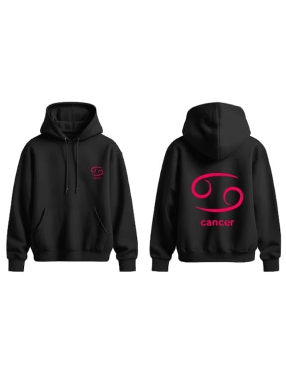 Generic - هودي قطن اسود مع شعار برج السرطان الاحمر مقاس (M)