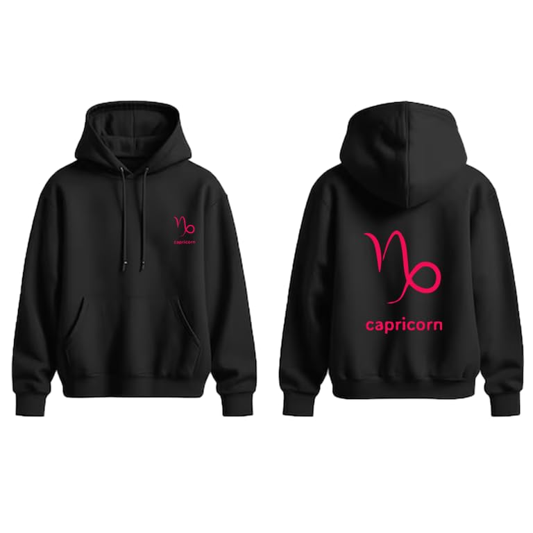 Generic - هودي قطن اسود مع شعار برج الجدي الاحمر مقاس (M)