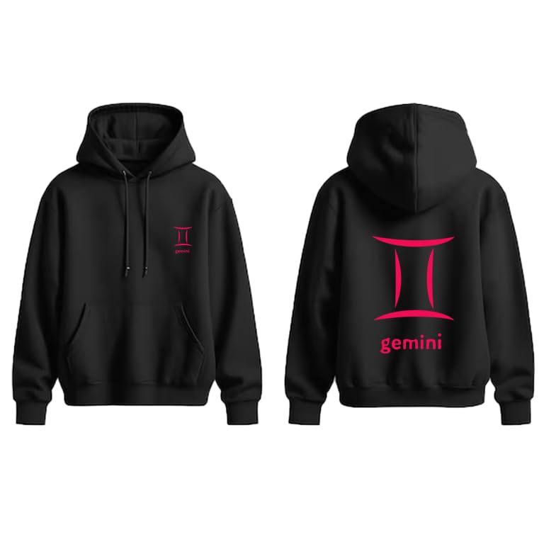 Generic - هودي قطن اسود مع شعار برج الجوزاء الاحمر مقاس (M)
