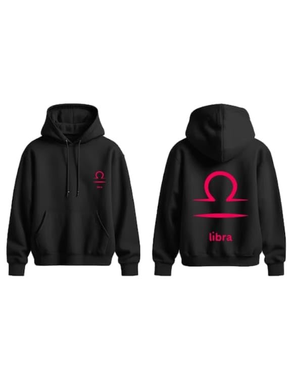 Generic - هودي قطن اسود مع شعار برج الميزان الاحمر مقاس (6-9 سنوات)