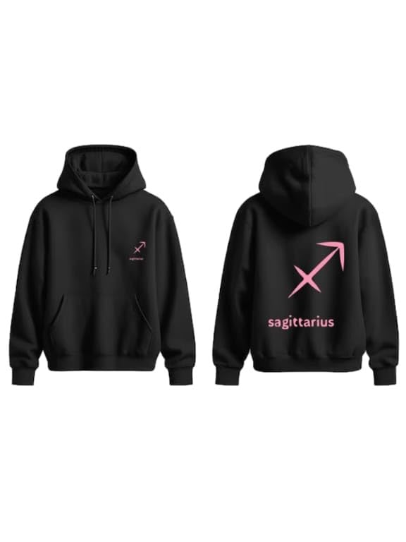 Generic - هودي قطن اسود مع شعار برج القوس الوردي مقاس (L)