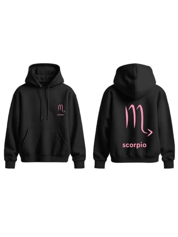 Generic - هودي قطن اسود مع شعار برج العقرب باللون الزهري مقاس (2XL)