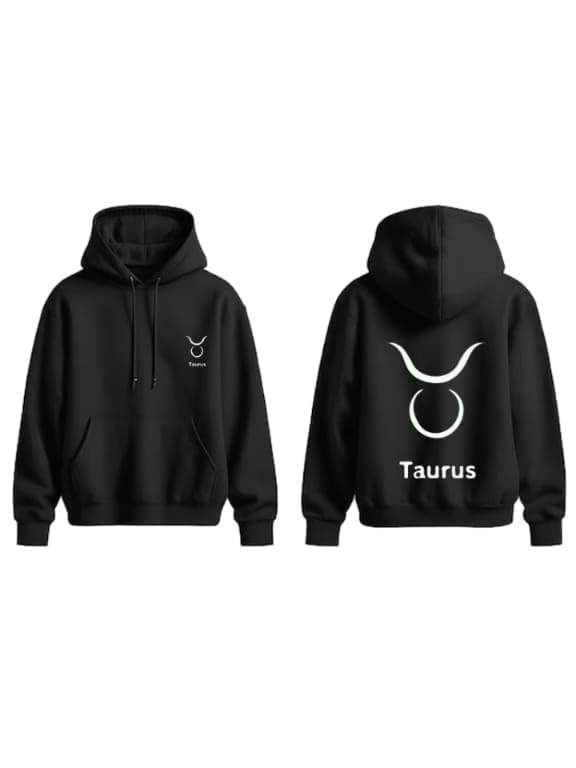 Generic - هودي قطن اسود مع شعار برج الثور الابيض مقاس (2XL)