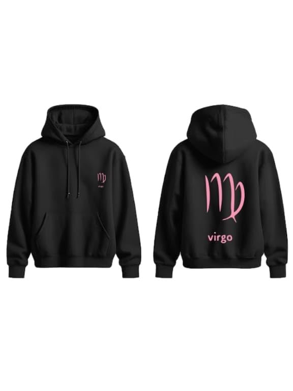 Generic - هودي قطن اسود مع شعار برج العذراء الوردي مقاس (M)