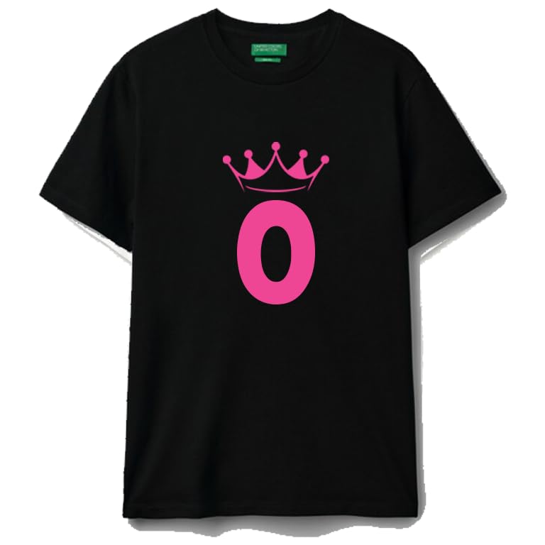 Generic - تيشرت قطن اسود كاجوال مطبوع عليه تاج حرف O مقاس (XL)