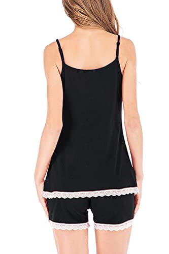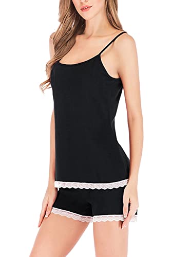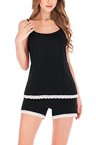 Generic - بيجامة شورت نسائى أسود قطن بفستونة ابيض