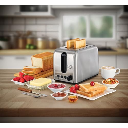 BLACK+DECKER - محمصة خبز من الفولاذ مقاوم للصدأ بقدرة 1050 وات، منبلاك اند ديكر، فضي/ أسود