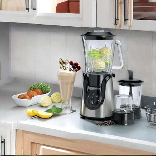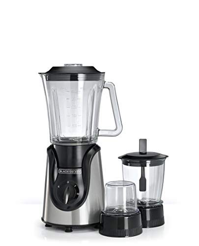 BLACK+DECKER - خلاط زجاجي مع مطحنة ومفرمة 600 واط من بلاك اند ديكر - ابيض واسود، BX600G-B5، 1.5 ليتر، 1.5 لتر