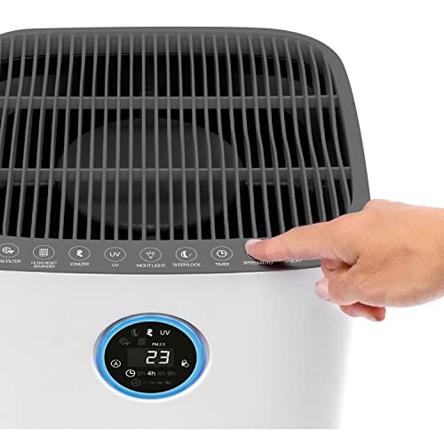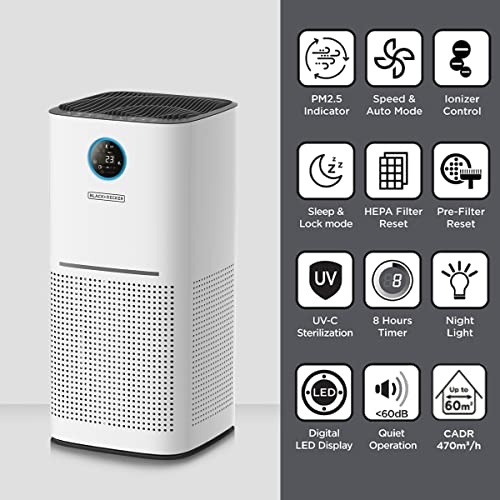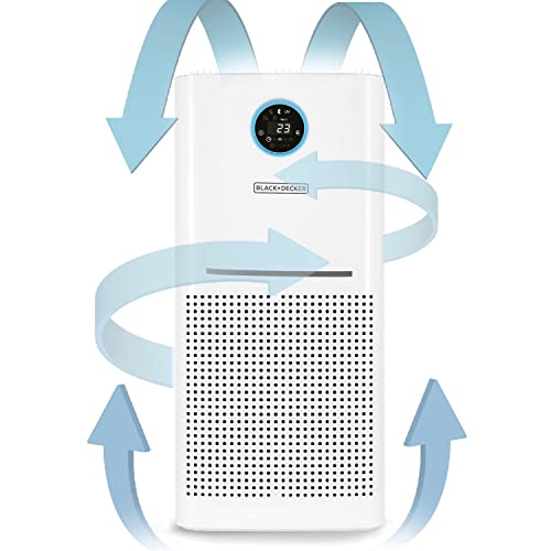 BLACK+DECKER - منقي ومنظف هواء بفلتر هيبا 13 من بلاك + ديكر مع مستشعر اضاءة 360 درجة|فلتر كربون بتقنية المؤين CADR420يغطي حتى 60 متر مربع شاشة ديجيتال باللمس|وضع النوم ومؤقت AP3560-B5- لون ابيض - ضمان لمدة عامين
