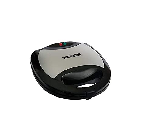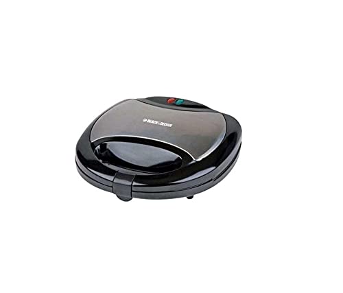 BLACK+DECKER - صانعة ساندوتش من بلاك آند ديكر موديل TS 2000 B، بتصميم عصري، مصنوعة من الستانلس ستيل، باللون الأسود، بقوة 750 واط، مع أسطح طهي مزدوجة