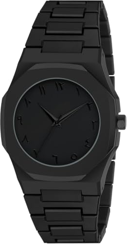 Generic - ساعة انالوج عربية بمينا أسود وسوار أسود من البولي كربونات للرجال والأولاد