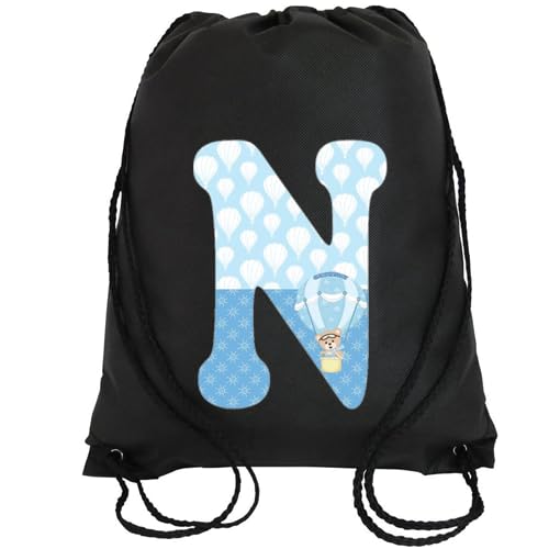 Generic - شنطة ظهر برباط أسود وتصميم حروف (N)، أزرق