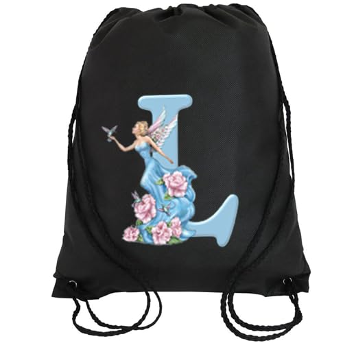 Generic - شنطة برباط بلون أسود بتصميم زهور مع حرف L