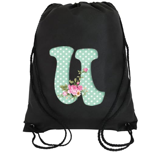 Generic - شنطة برباط بلون أسود بتصميم زهور، حرف (U)