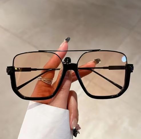 Generic - نظارة شمسية عصرية بطراز رترو شيك بشنبر مربع كبير الحجم مع مفصلات معدنية للقيادة والشاطئ والحفلات