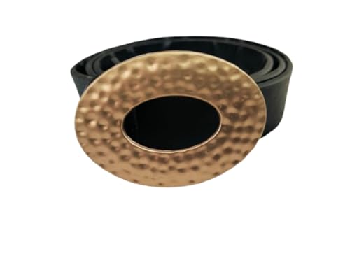 Generic - حزام جلد صناعي اسود مع ابزيم دائري ذهبي اللون