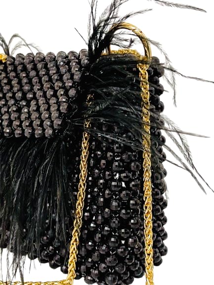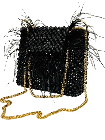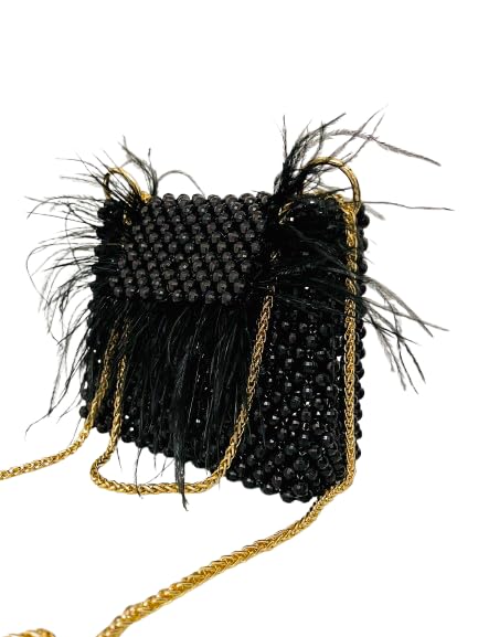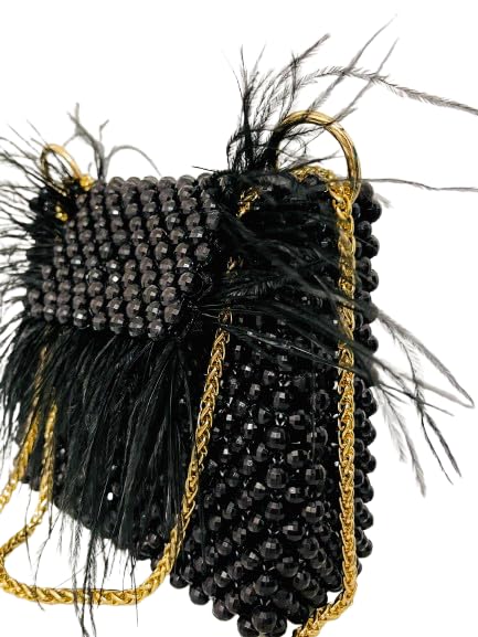 Generic - حقيبة يد خرز كريستال أسود بريش