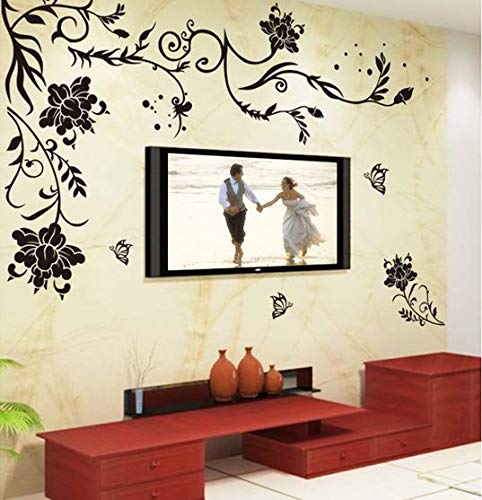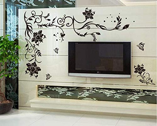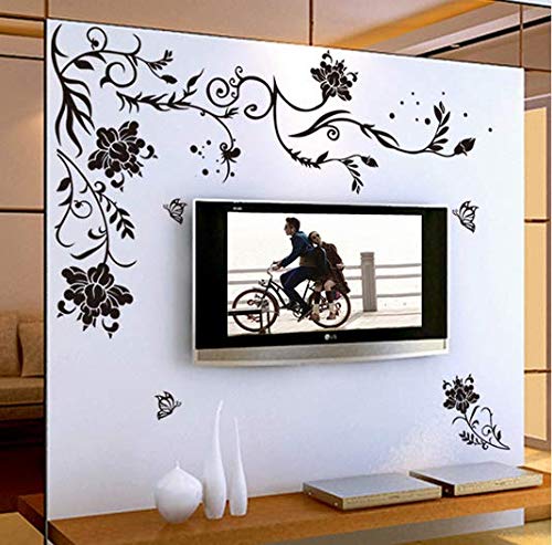 Other - ملصقات جدران ورق لصق ذاتي بشكل مورد ،لون اسود - 60سم X 90سم