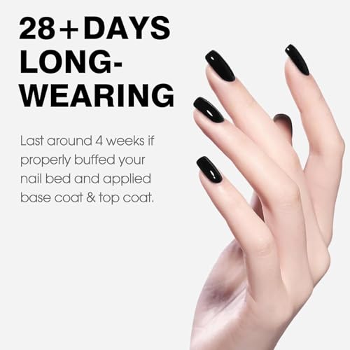 - لون أسود داكن كلاسيكي - لون كثيف وغني مثالي لتصميمات الأظافر الأنيقة أو الجريئة. يوفر تغطية كاملة مع لمسة نهائية لامعة.