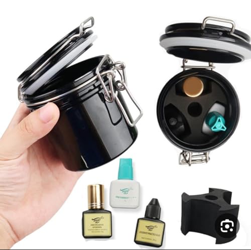 Generic - حافظة زجاجية سوداء للعناية بجلو الرموش، مع قفل معدني، مع مجموعة مستلزمات تمديد الرموش