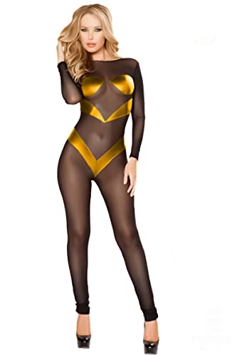 Generic - سالوبيت لانجيري توتو من الجلد بلون ذهبي واسود