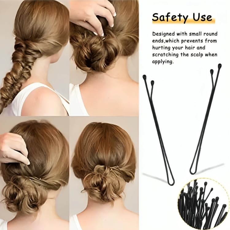 - محتويات العبوة: طقم مكون من 24 دبوس شعر أسود، كل واحد بقياس 5 سم، مثالي لاحتياجات تصفيف الشعر اليومية.