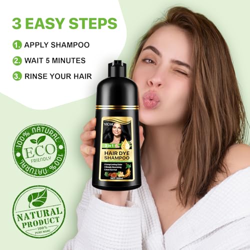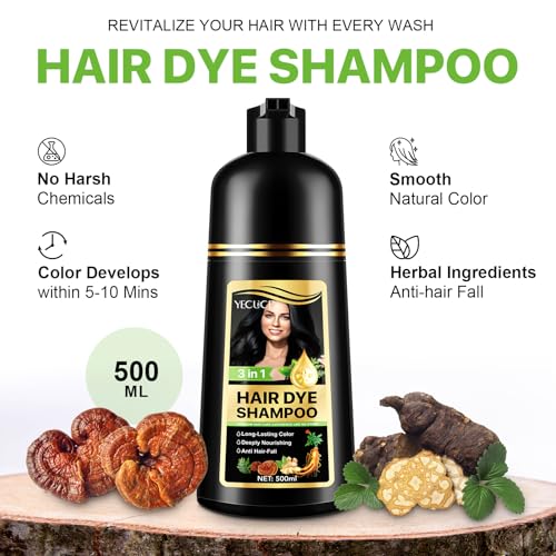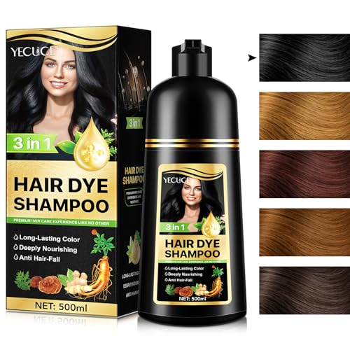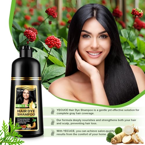 Yecuce - شامبو صبغة الشعر الأسود 3 في 1، شامبو ملون لتغطية الشيب، طبيعي بمكونات عشبية للرجال والنساء (لون أسود)