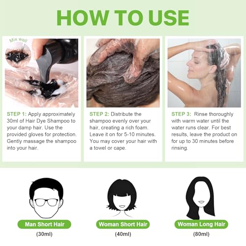 - لون، غذّي وأعِد حيوية شعرك — شامبو صبغة الشعر الأسود 3 في 1 لدينا يمنح نتائج سريعة في 15-20 دقيقة فقط. هذه المعجزة الصغيرة لا تقتصر على تغطية الشيب فقط. لقد أضفنا مستخلصات نباتية قوية مثل هو شو وو والجينسنغ لتعزيز جذور شعرك، وتزويد خصلاتك بجرعة عميقة من التغذية، وترك شعرك أقوى، ناعماً وجميلاً. إنه علاج مثالي لشعرك.