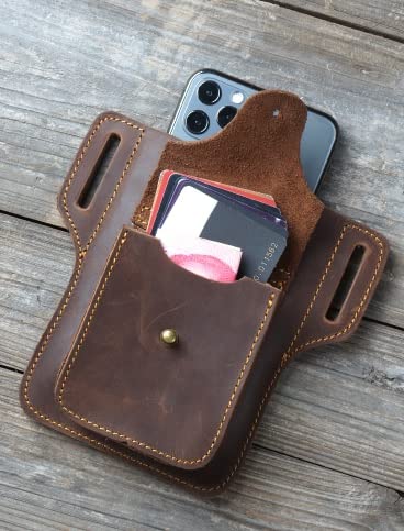 Generic - جراب حماية مصنوع يدويا محمول مصنوع من جلد طبيعي للرياضة والجري مع حزام تخزين للموبايل مع حامل كروت ائتمان لموبايل سامسونج جالاكسي لون اسود