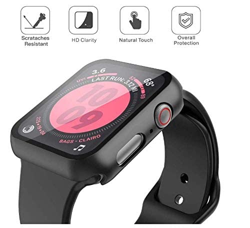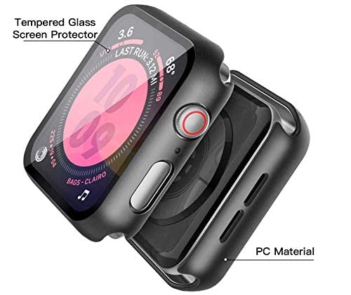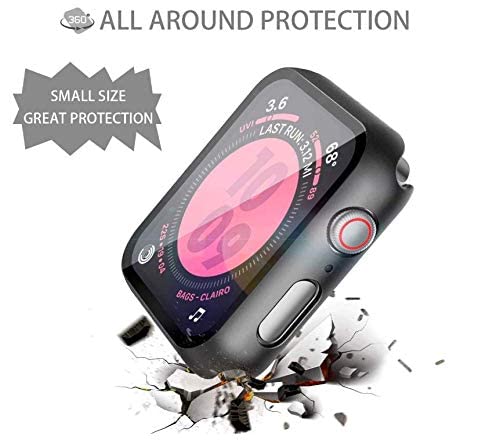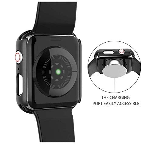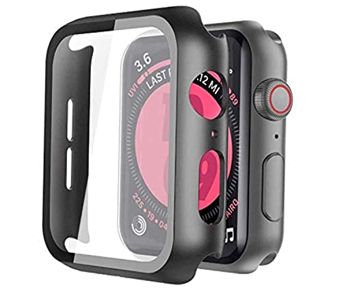 Generic - جراب صلب اسود متوافق مع ساعة ابل سلسلة 5 و4 مقاس 38 ملم مع واقي شاشة، واقي شاشة من الزجاج المقوى عالي الدقة رفيع للغاية لساعة اي ووتش سيريز 5/4، تيمبرد جلاس
